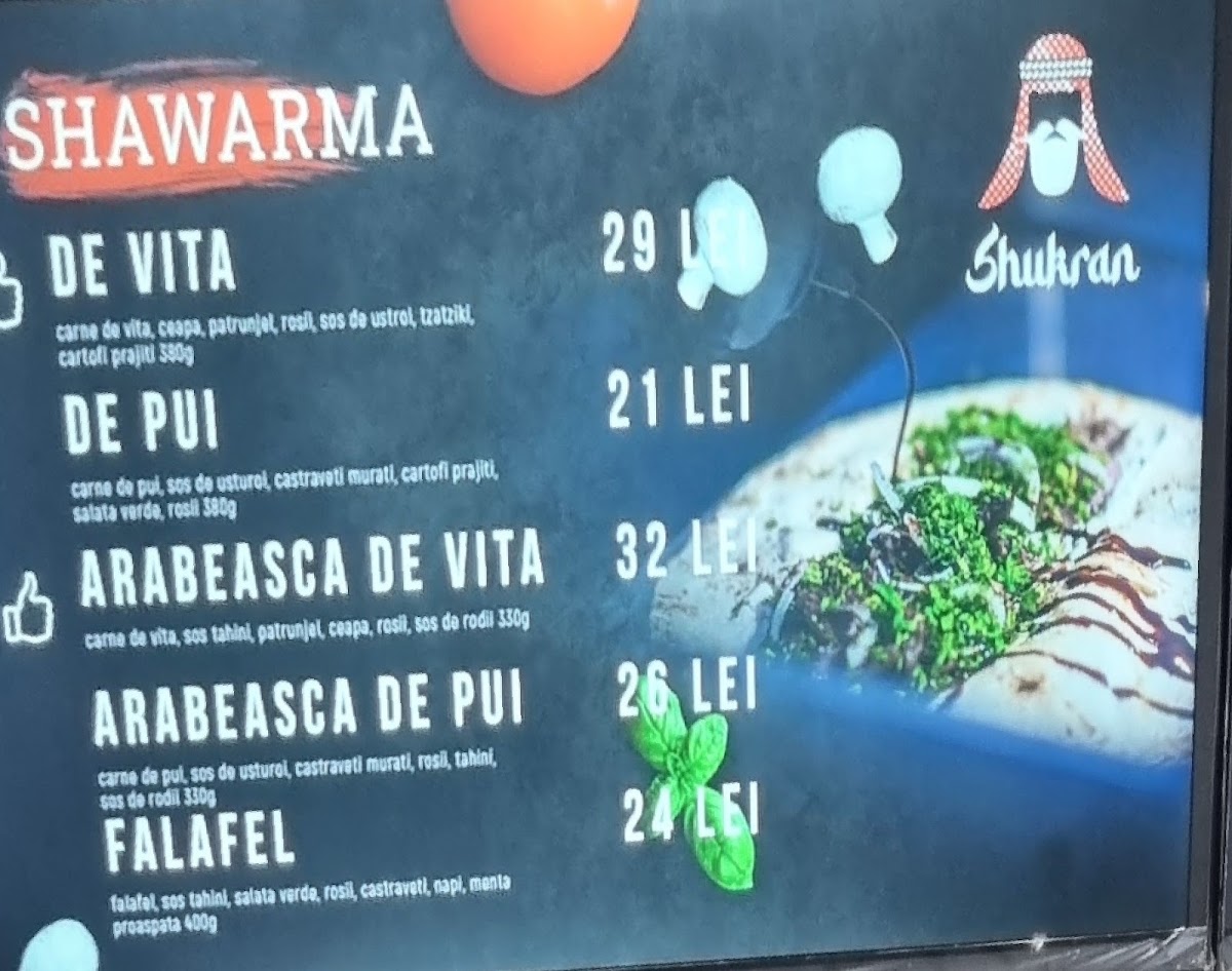 Shawarma Shukran Menu
